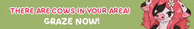 A pink cow gazes at you across the grassy plains... Should you stay for a while?